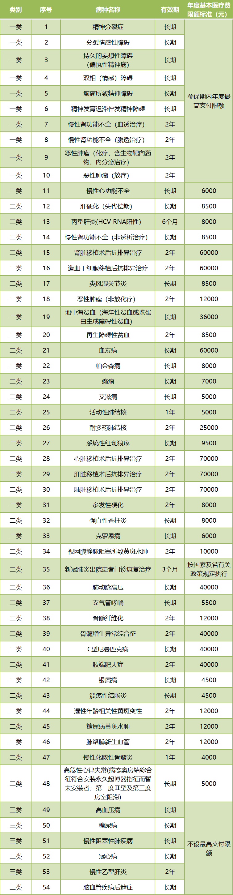 其中基本险门特实行分类管理(有一类、二类、三类),共54个病种;补充险门特不作分类管理,共9个病种。有相关病情且能提供申请资料的患者可申请门特。